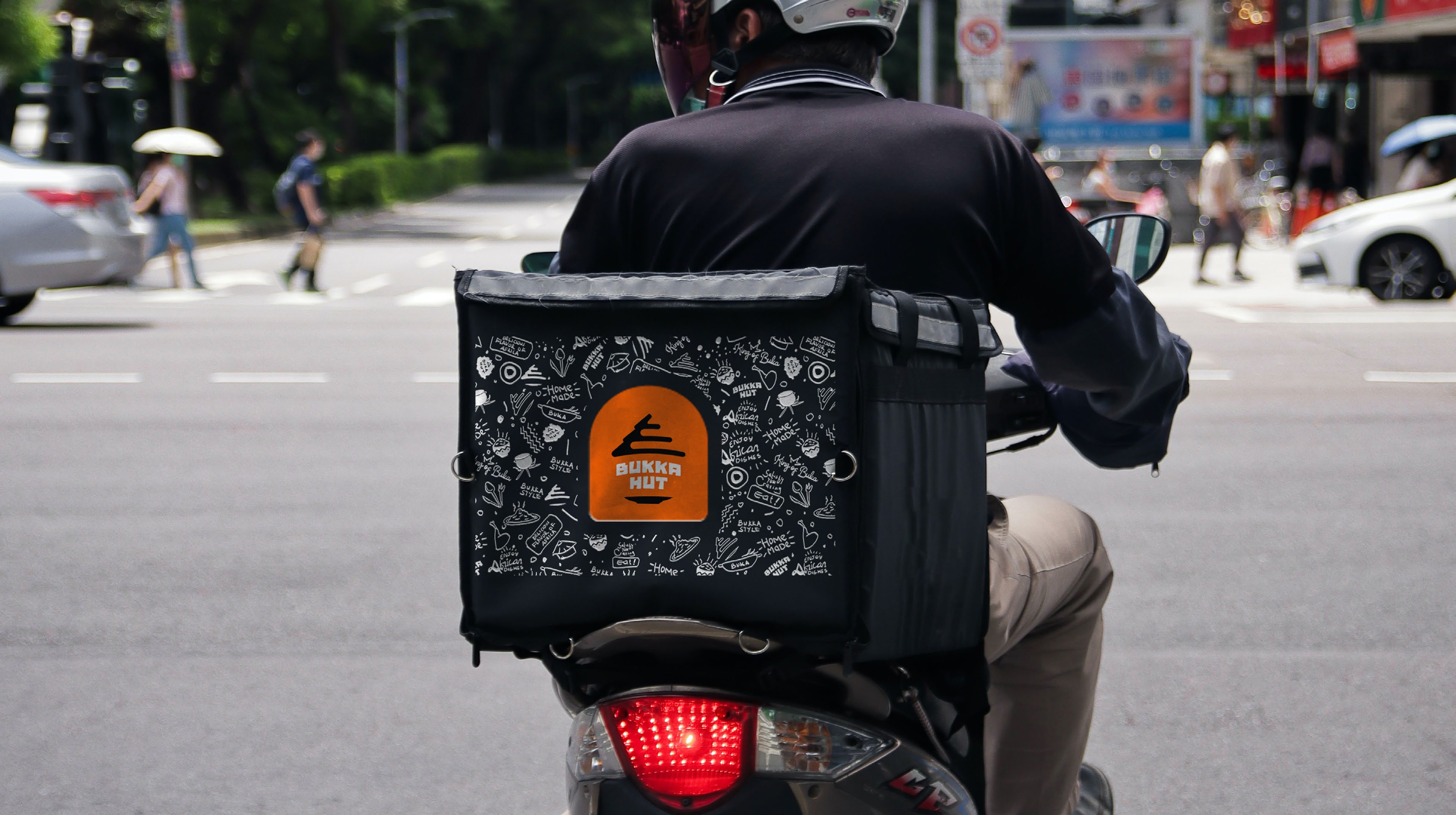 Bukka Hut extends its brand identity across collaterals such as email signatures, stationery, uniforms, merchandise, vehicle branding, signage, packaging, and digital platforms. Each extension reinforces the brand’s consistent and homely image.