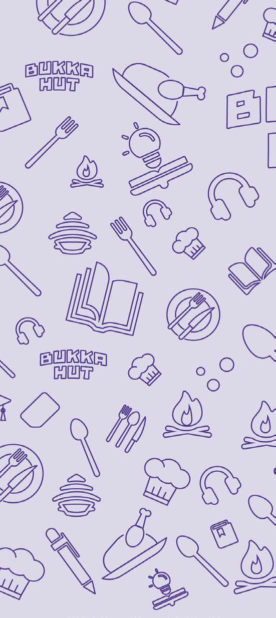 Bukka Hut patterns are a vibrant extension of our brand, using food-inspired icons and cultural motifs to create a warm, recognizable identity across all touchpoints.